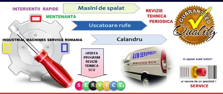 Service complet sau interventii pentru toate marcile si tipurile de masini utilaje din dotarea spalatoriilor si curatatoriilor profesionale.